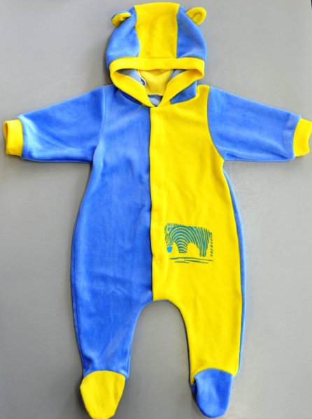 Комбинезон на кнопках, с длинным рукавом, с капюшоном.