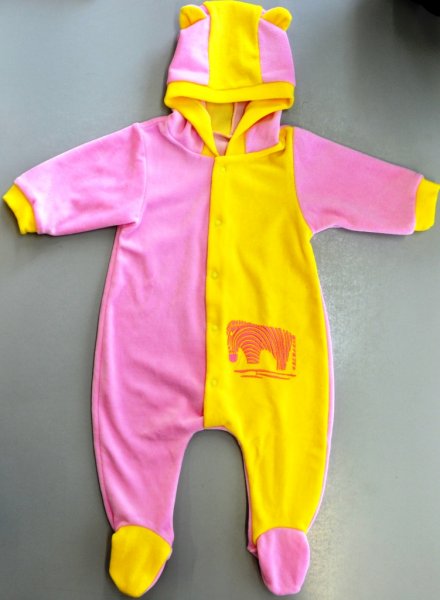 Комбинезон на кнопках, с длинным рукавом, с капюшоном.