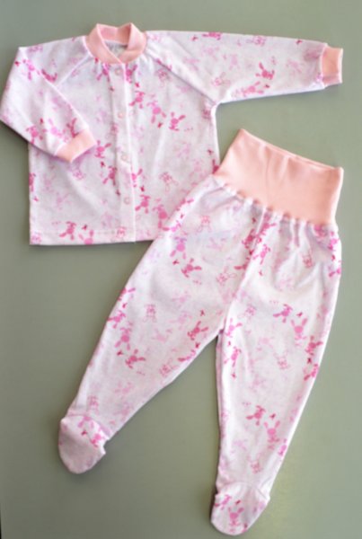 Комплект для новорождённых: кофточка на центральных кнопках + позунки со следом, короткие, на широкой резинке.