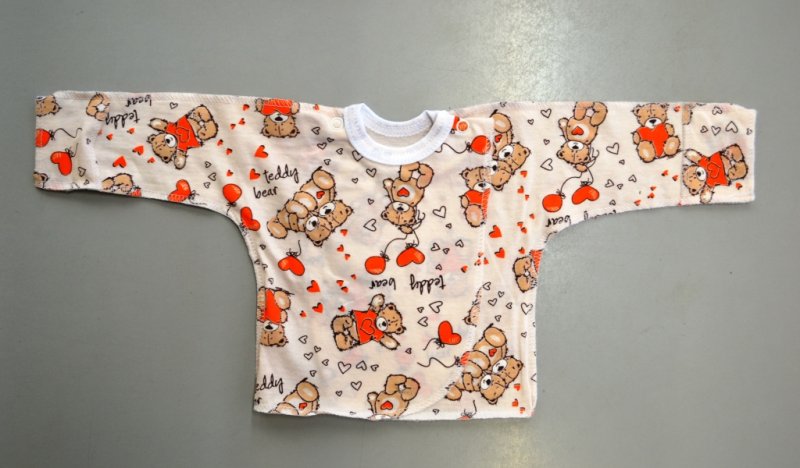 Распашонка новорожденная с запахом, с варежкой и с кнопками на плечах.